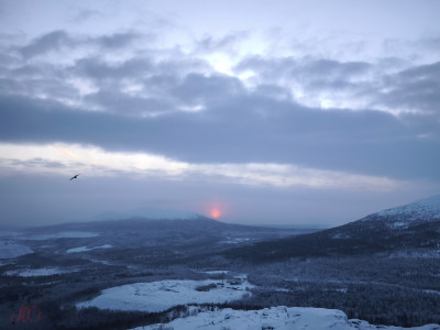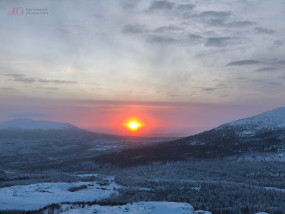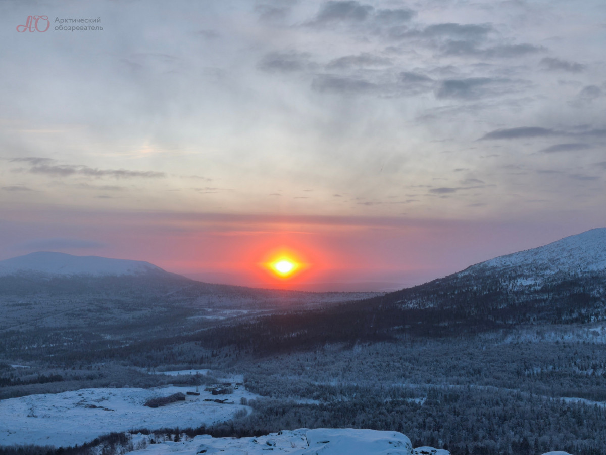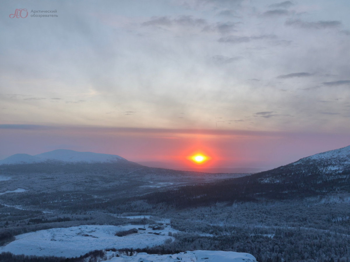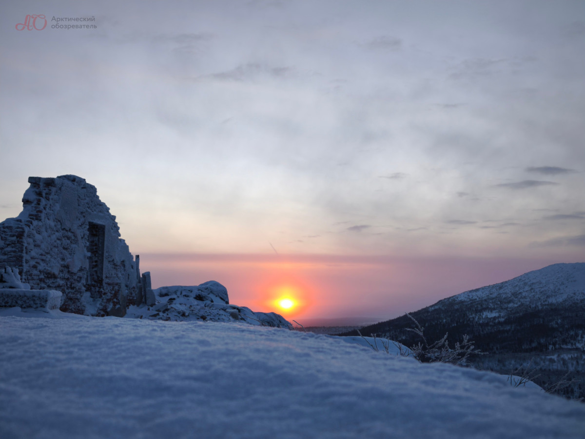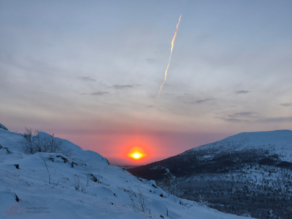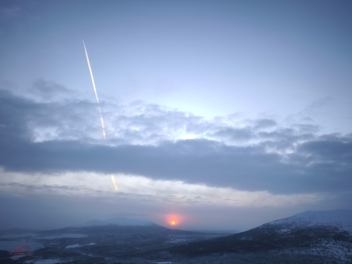 С первой попытки поймать Жар-птицу у Арктического обозревателя не получилось — небо было затянуто до такой степени, что даже очертания Хибин скрывала сплошная пелена. Но, как говорится, удача улыбается смелым: погода вознаградила нас за проделанный из Мурманска путь, и на горизонте забрезжил рассвет.